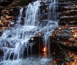 There are two potential ways in which shale gas operations could contaminate aquifers. One is through leakage of the chemicals used in fracturing. These then would be liquid contaminants. The second is the infiltration of aquifers by produced methane. This is a gaseous contaminant, albeit in the main dissolved in the water. If present, a portion may be released as a gas, as spectacularly depicted in Gasland. Natural occurrences such as the Eternal Flame Waterfall in the Shale Creek Preserve in New York, shown in the picture, demonstrate methane intrusion into a fresh water source.